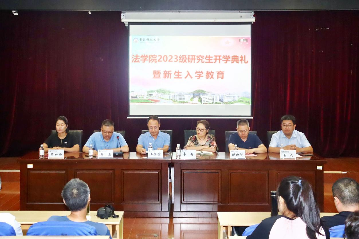 9月12日下午,法学院2023级研究生开学典礼暨新生入学教育在模拟法庭举行。法学院院长王金堂、党总支书记李卉、副院长李鑫、陈为智、党总支副书记兼副院长王祥梅出席典礼。硕士生导师、办公室、教学办、学工办及全体2023级研究生参加典礼。典礼由副院长李鑫主持。
