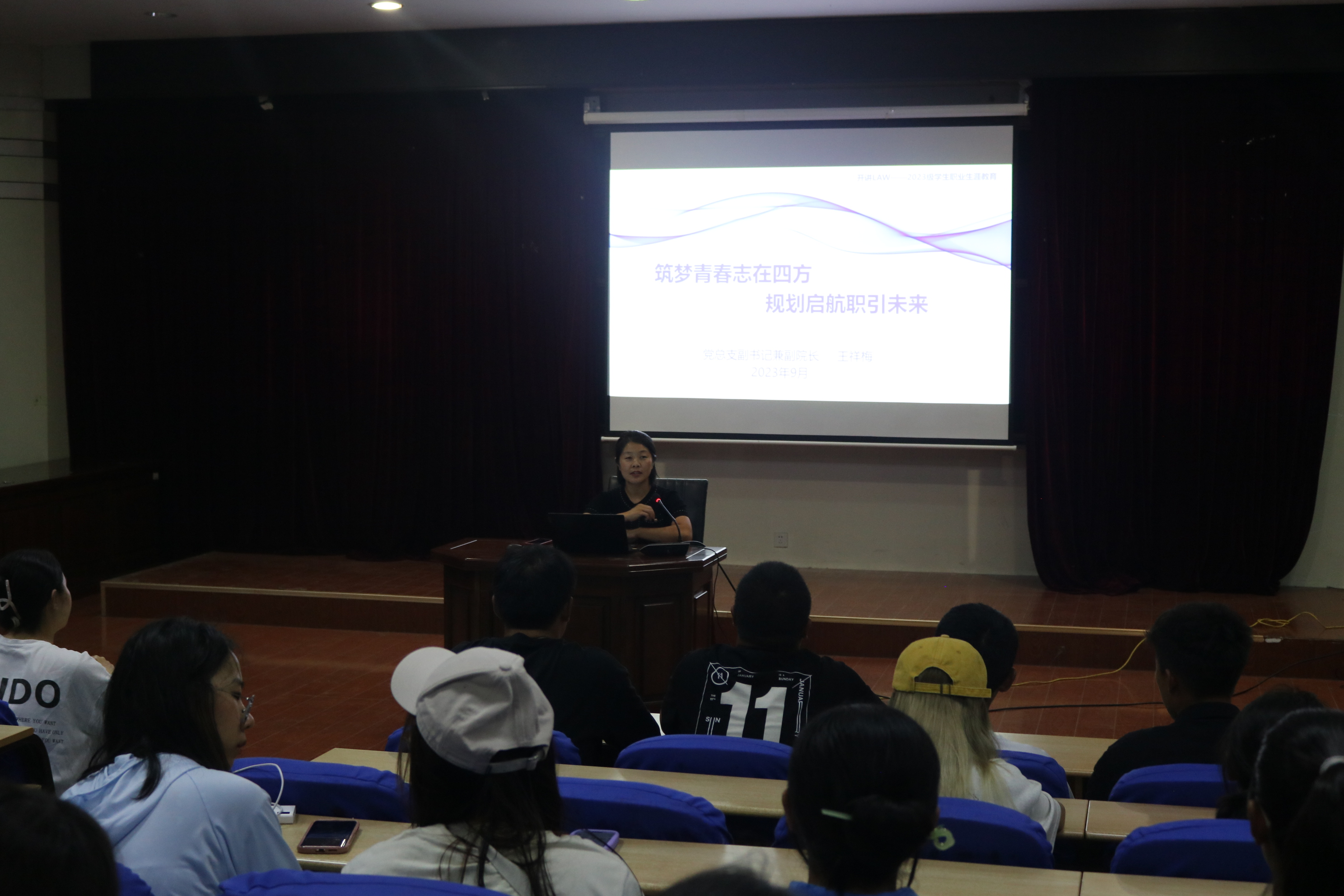 为进一步提升法学院本科专业人才培养质量,促进大学生做好职业生涯规划,助力2023级新生客观认识专业与职业生涯发展,确立大学学习目标,明晰职业发展方向。9月13日晚上,党总支副书记兼副院长王祥梅做客学院开讲law,为2023级新生进行了职业生涯规划教育,会议由辅导员王宇主持。