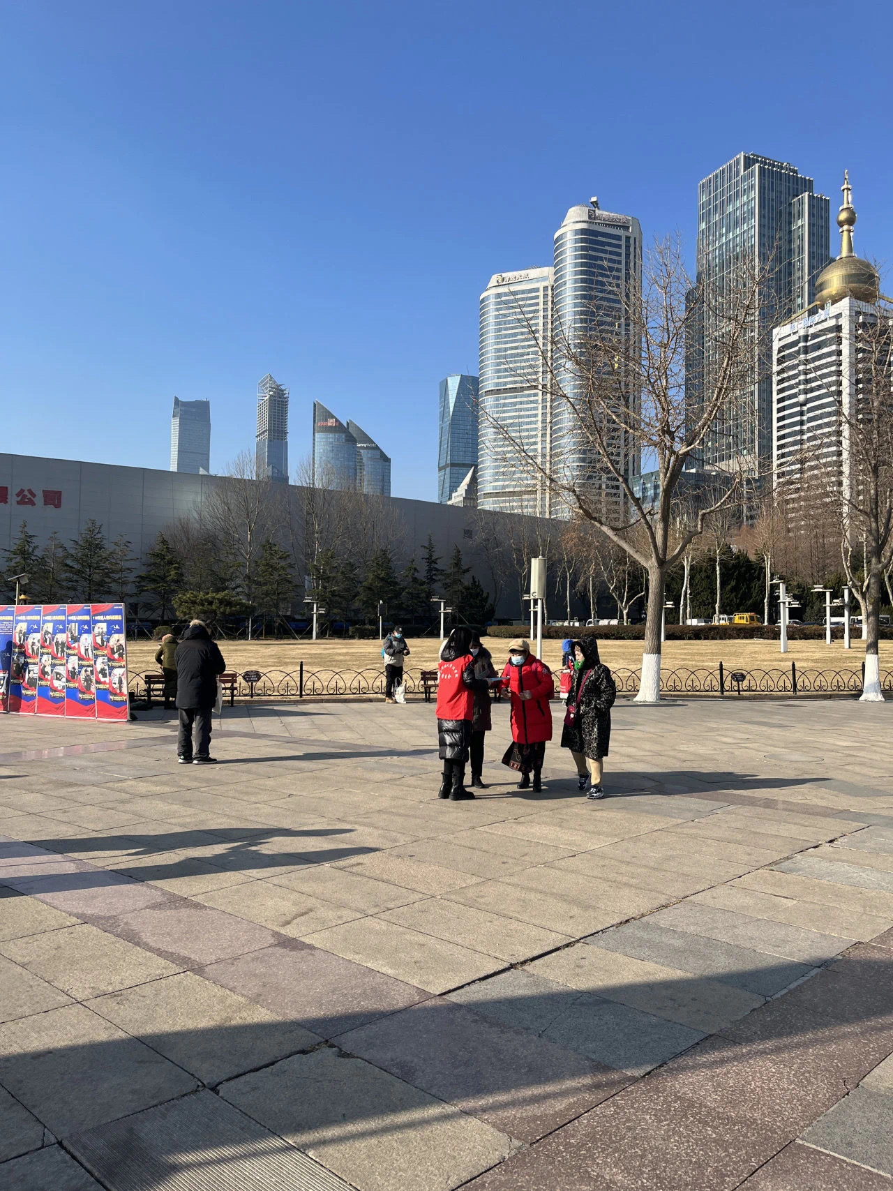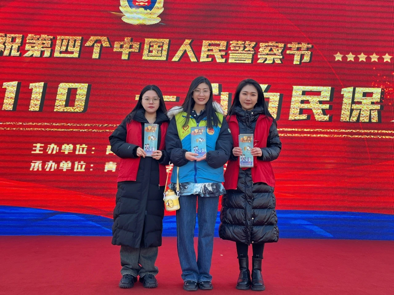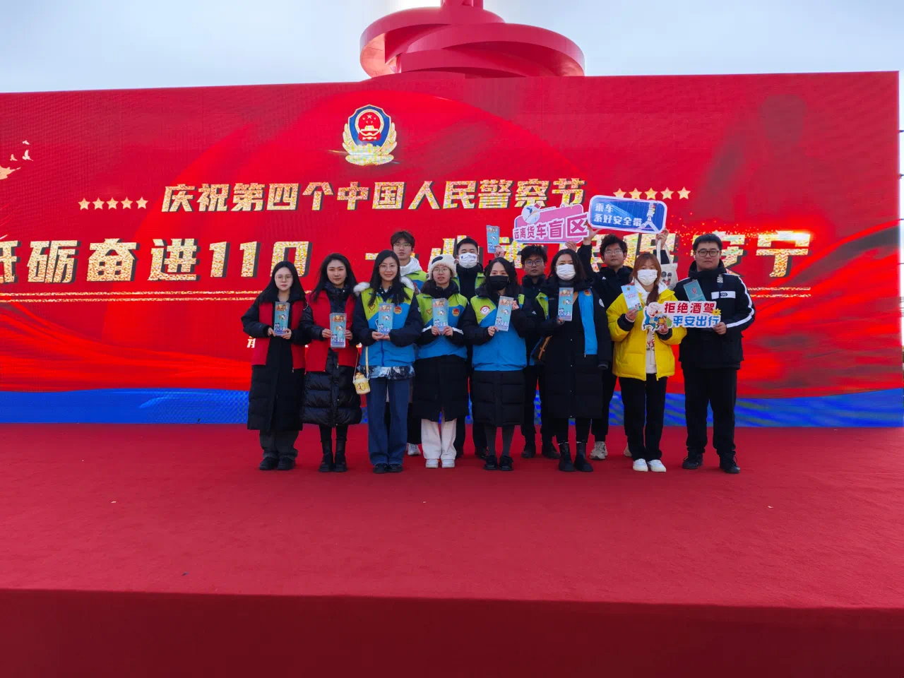 1月10日上午,青岛市公安局在五四广场举办庆祝第四个“中国人民警察节”暨第38个“110宣传日”集中宣传活动,法学院三名反诈青年志愿者参加本次活动。