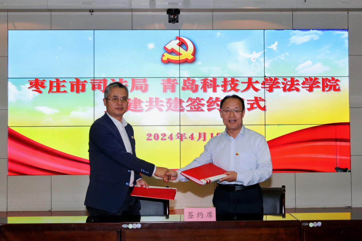 双方签订了党建共建协议,为“党组织共建单位”“青岛科技大学法学专业就业创业实践基地”揭牌。双方表示将进一步加强党建共建,在习近平法治思想学习培训、法治人才培养、青年干部交流、法治实务研究等方面深化合作,实现党建工作与业务工作深度融合,推动产学融合、校地合作迈上新台阶。