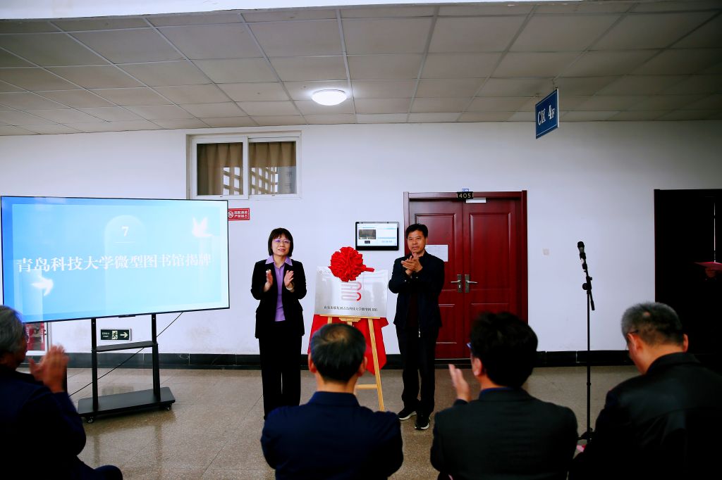 山东出版集团旗下山东教育出版社、山东美术出版社分别向校图书馆捐赠图书,法学院党委副书记王祥梅颁发捐赠证书,校图书馆党总支书记王士卿与山东教育出版社总编辑田晓玉共同为山东出版集团青岛科技大学微型图书馆揭牌。