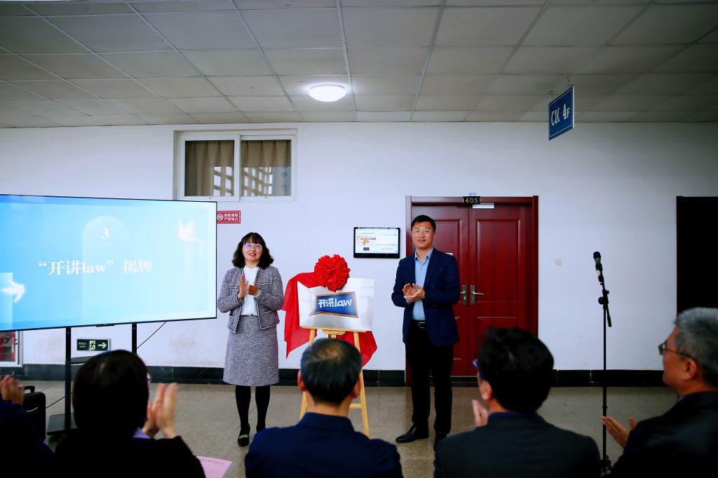 随后,学校学生工作处处长王丽、团委书记刘跃宁共同为法学院师生全环境立德树人和思政教育融合创新平台“开讲LAW”揭牌。目前,学院已举办4次“开讲LAW”,邀请了陈哲、门姿含等大咖开讲,涉及支教、法律、音乐等多个领域,带来了一堂堂有内容、有思考、有情怀的思政大课,学生知识有收获,心灵有启迪。下一步,开讲LAW将陆续邀请校内外行业大咖走进校园,分享读书和创新创业故事,打造“周周有嘉宾 、月月有精彩、全年不断线”的思政育人品牌。