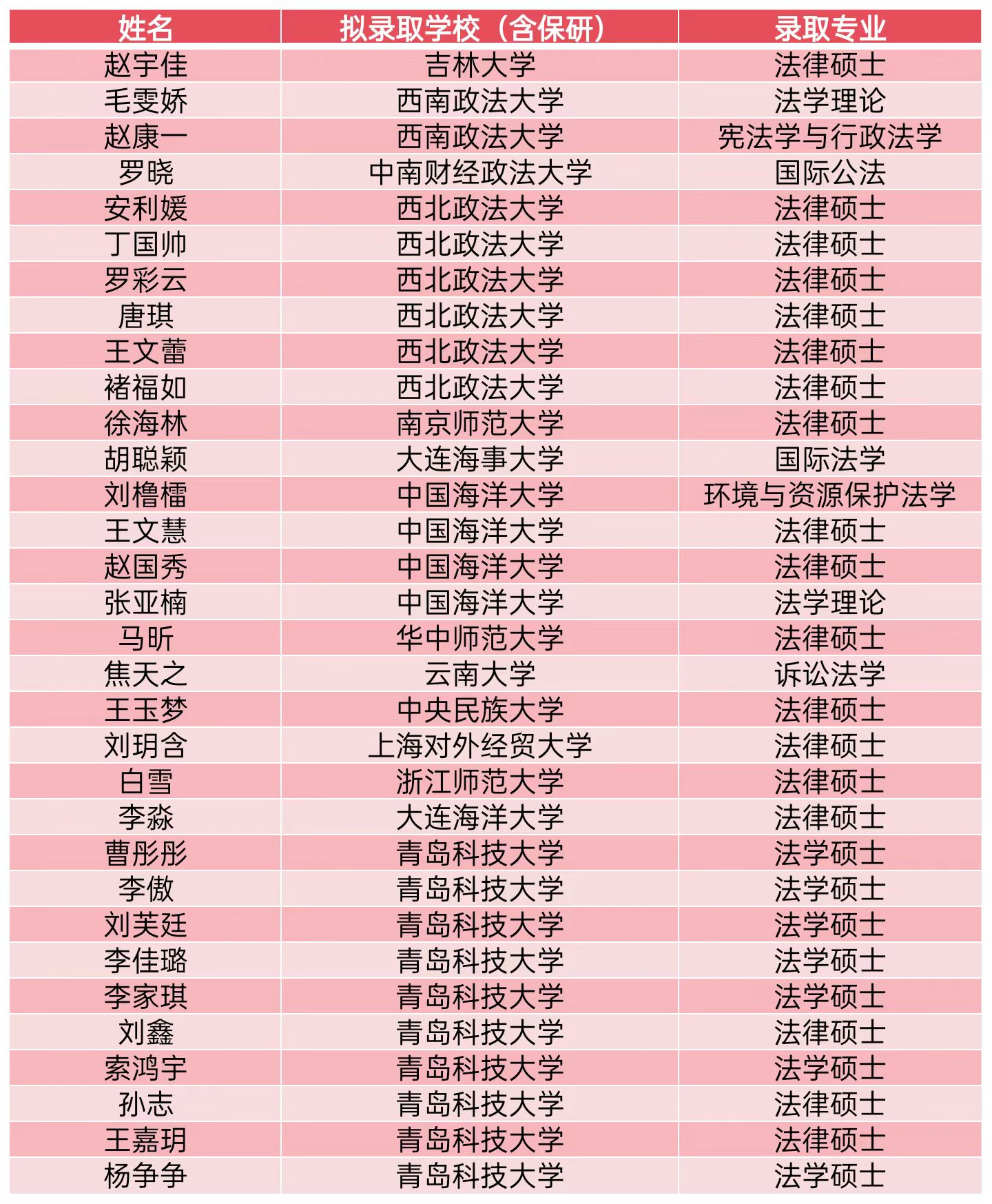 在今年考研之中,法学院学子充分展现学习能力与奋进精神,涌现出一批高分“学霸”,录取院校靓丽纷呈,学院24名同学被中国人民大学、吉林大学、山东大学、中国海洋大学、南开大学、中南财经政法大学等985、211、国家双一流高校录取。