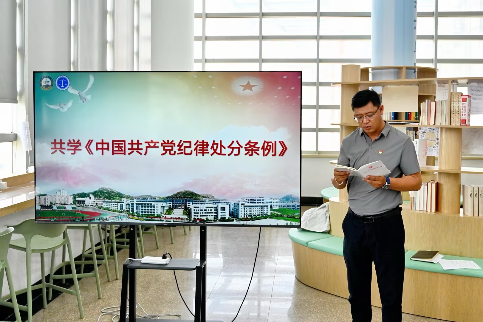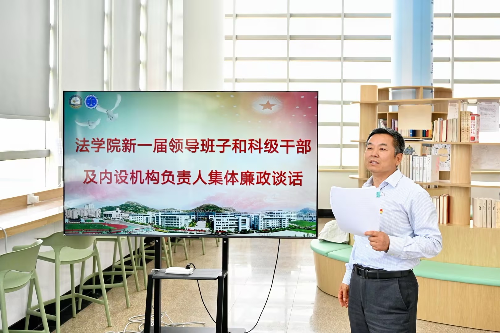 6月4日上午,学校纪检监察机关与法学院党委在弘毅楼悦读轩共同开展党纪学习教育联学共促“清亲”沙龙。纪委副书记王江忠作辅导报告,法学院党委书记曲明、院长王金堂、监察专员办公室综合处副处长李佳、监察专员办公室案件审理室主任侯雯雯、学院理论中心组成员及学院党员、教师代表参加活动。