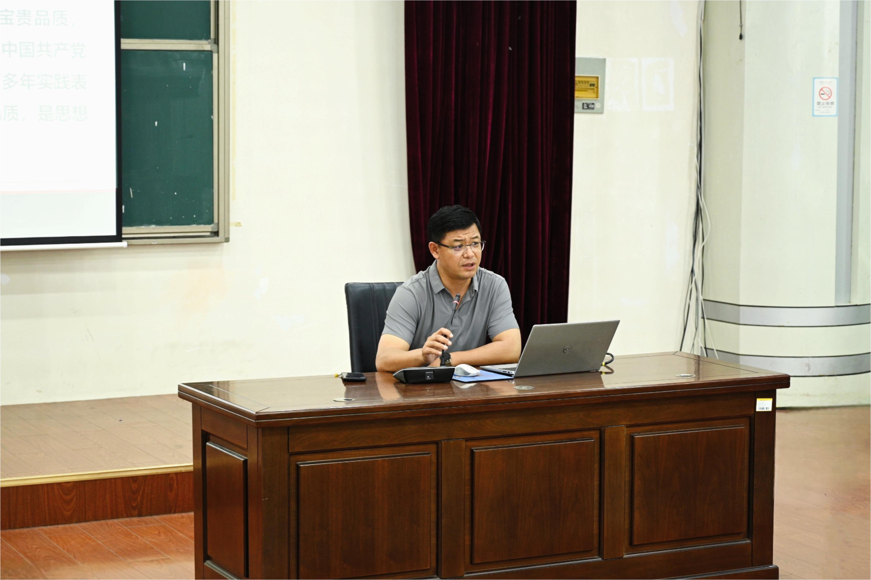 为推动党纪学习教育持续走深走实,6月25日下午,法学院党委书记曲明在弘毅楼A201模拟法庭以“学纪、知纪、明纪、守纪”为主题为全体教工党员和研究生第一党支部学生党员讲授党纪学习教育专题党课。