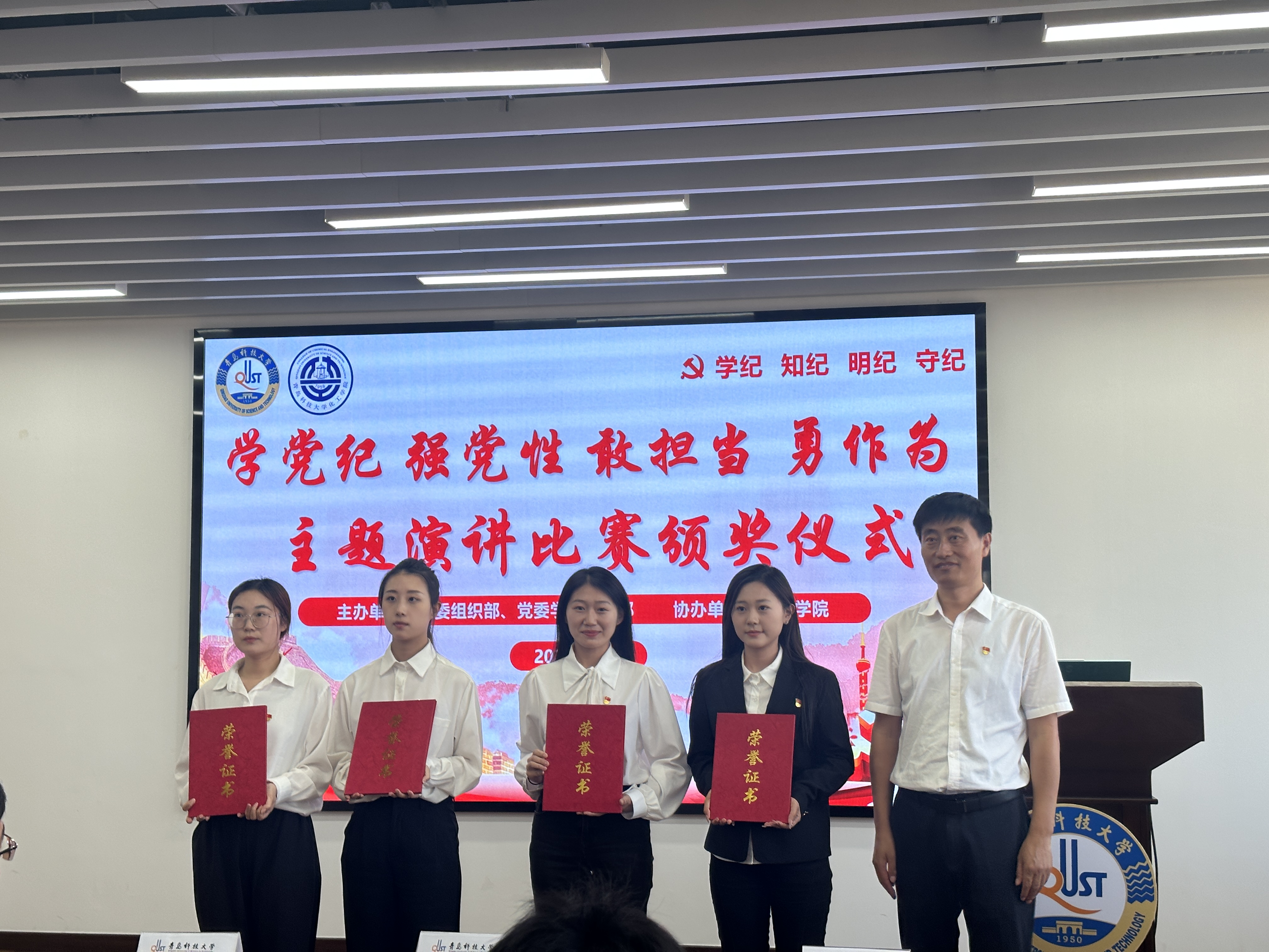 6月25日,青岛科技大学“学党纪 强党性 敢担当 勇作为”主题演讲比赛在四方校区举办,法学院研究生卢龙新获荣获二等奖。