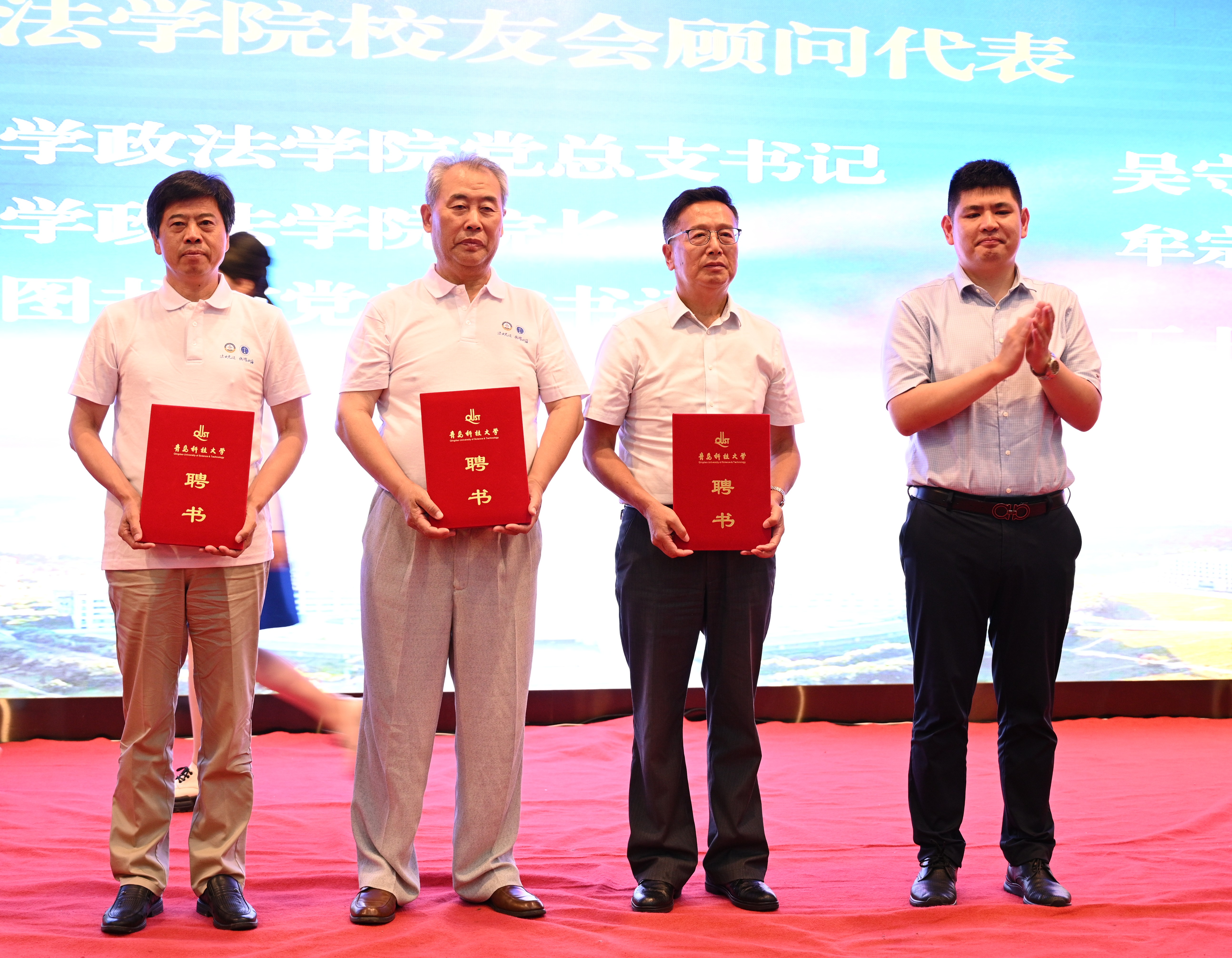 学校校友工作科科长孙振海宣读了《关于青岛科技大学法学院校友会换届的批复》,大会审议通过了学院校友会章程,推举产生了新一届学院校友会领导机构人员、理事名单,并聘请吴守言、牟宗荣、王士卿为校友会顾问代表,王金堂为会长,聘请张文波为常务副会长,岳超等5名校友为副会长, 门姿含为常务副秘书长,谭凯等11名校友为副秘书长,并颁发了聘书。