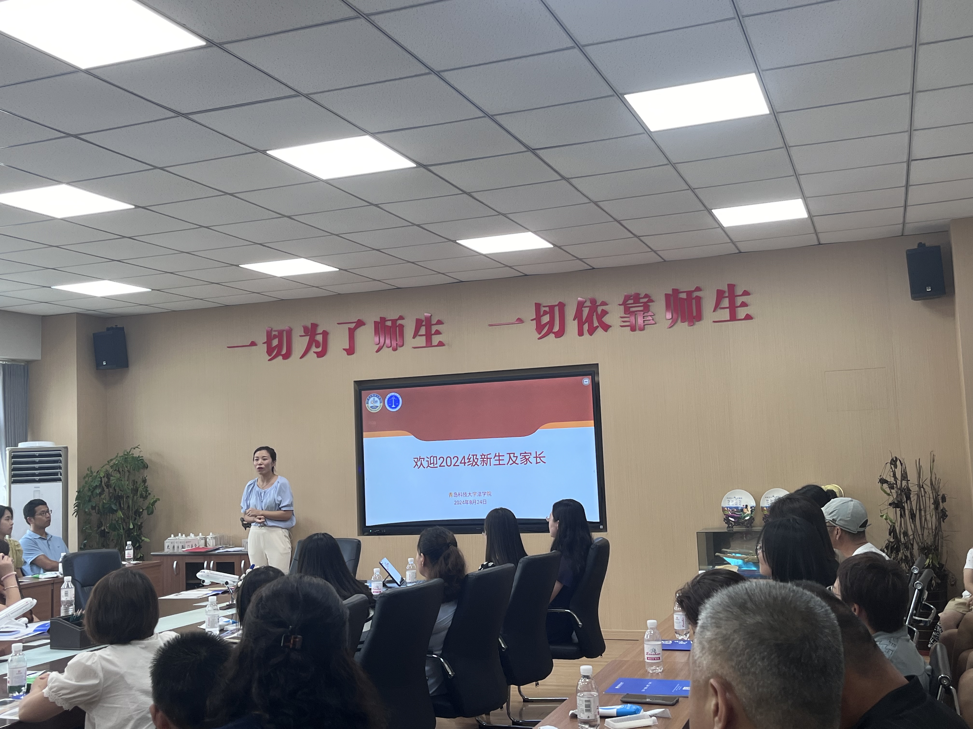 奋力拼搏数载春秋,金榜题名今岁盛夏。为增进2024级新生及家长对法学院和专业的认识与理解,8月24日,法学院举办2024级新生校园开放日活动。法学院党委书记曲明、院长王金堂、党委副书记兼副院长王祥梅、系主任、辅导员、优秀校友代表,以及省内各地市的40余位新生和家长代表走进青科大法学院,实现双向奔赴。