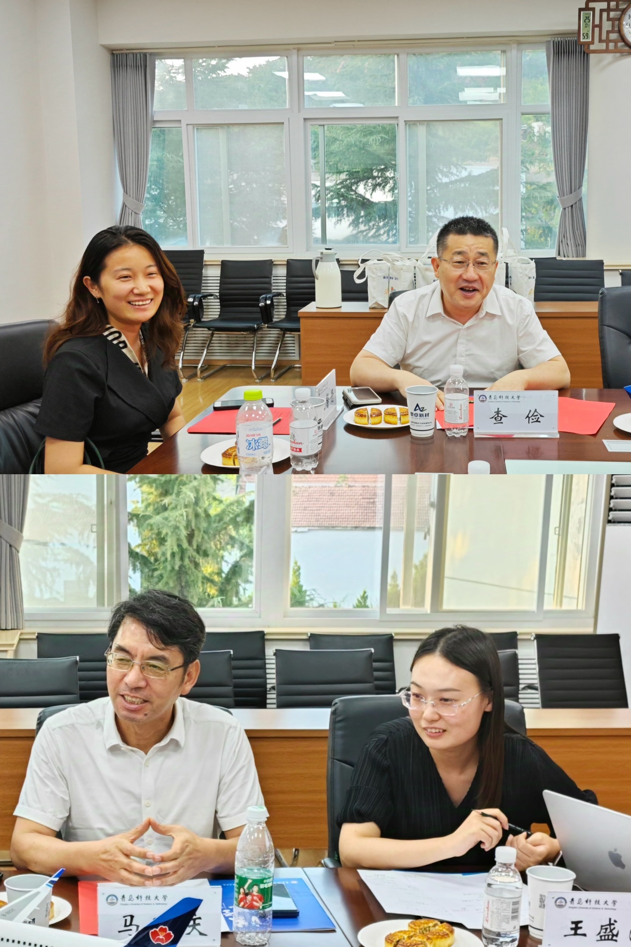 曲明代表法学院热烈欢迎于靖一行。他表示,此次座谈会是法学院访问盈科青岛律所之后,盈科青岛律所的快速回访,意义深远,希望双方借座谈交流的机会进一步深化在产教融合领域的务实合作,致力各项工作落地开展。参会人员共同观看了《青岛科技大学宣传片》以及法学院AI宣传片《獬豸传说》。