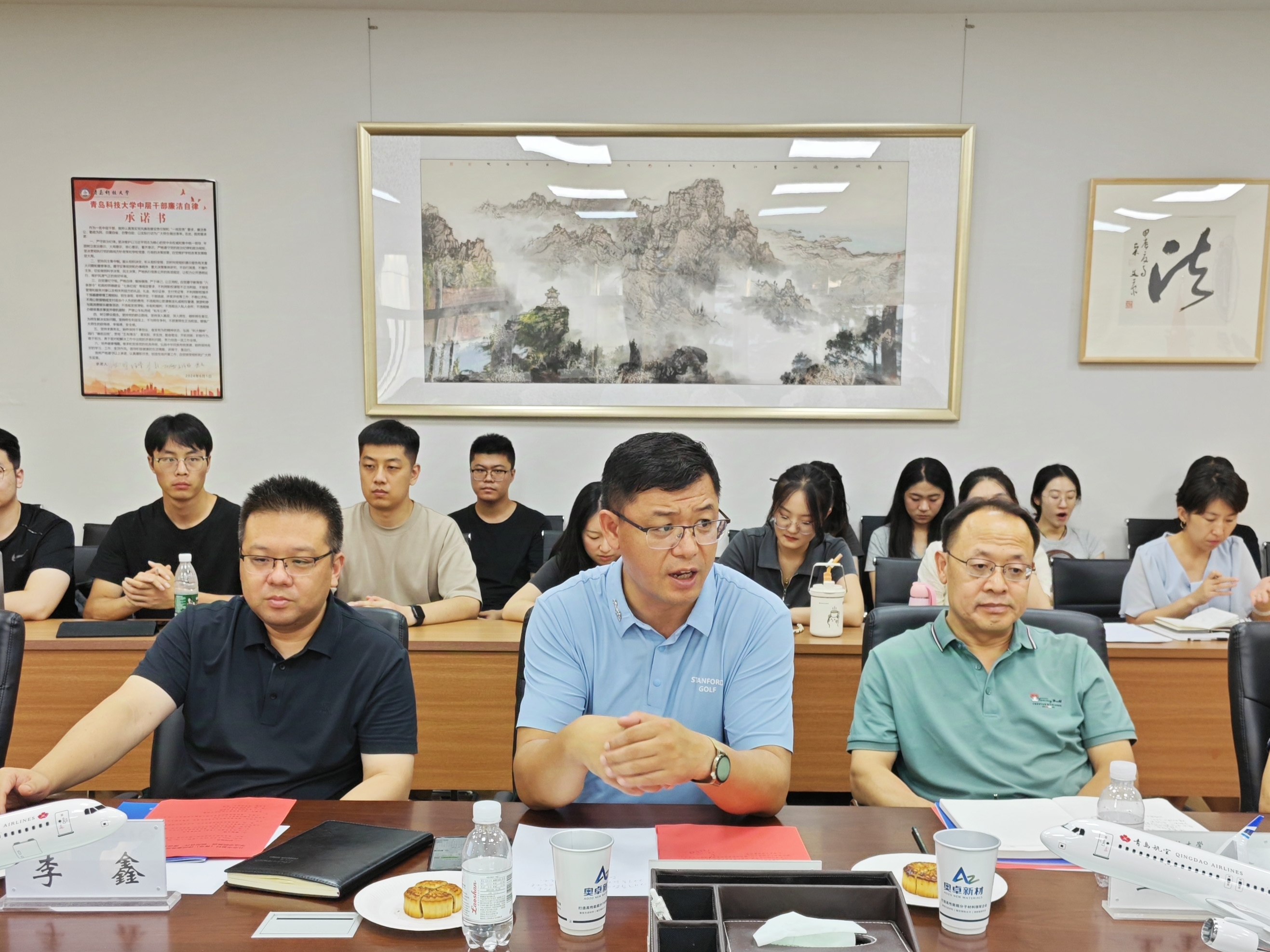 9月10日,北京市盈科(青岛)律师事务所执行主任于靖,律所党总支书记、管委会主任黄永超,律所监事会主任查俭,律所党总支纪检委员、监事会副主任马国庆,资本市场与金融法律事务中心副秘书长王盛汝,律所执行主任助理张馨丹一行来我院座谈交流。法学院党委书记曲明、法学院院长王金堂、副院长李鑫、法学院教授曲天明、法学院教师辛帅、田源、刘明月以及部分学生代表参加了座谈会。