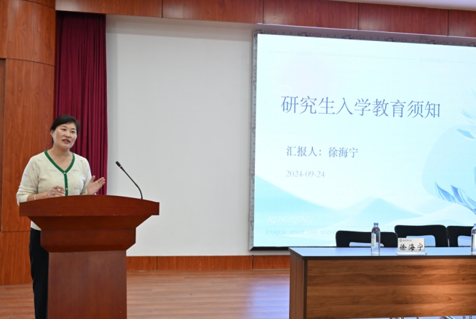 最后,学院研究生教学秘书徐海宁作了《研究生培养计划以及教学管理规范》报告,为新生详细介绍了研究生培养方案、教学安排等相关事宜。