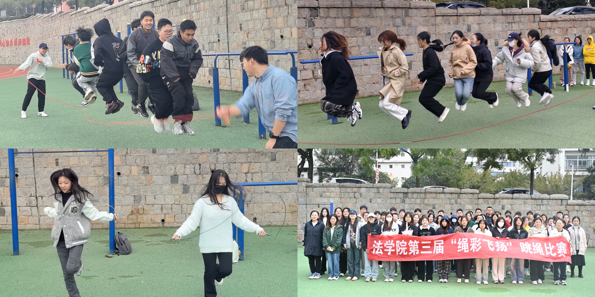 青春无止境,运动扬风采。心理工作站与学院大学生体育联盟共同举办了“跳动青春,绳彩飞扬”花样跳绳比赛,通过比赛,既帮助师生宣泄负面情绪,又磨炼了意志,使人保持积极向上的心态,展现了法学院师生积极进取、团结向上的精神面貌。