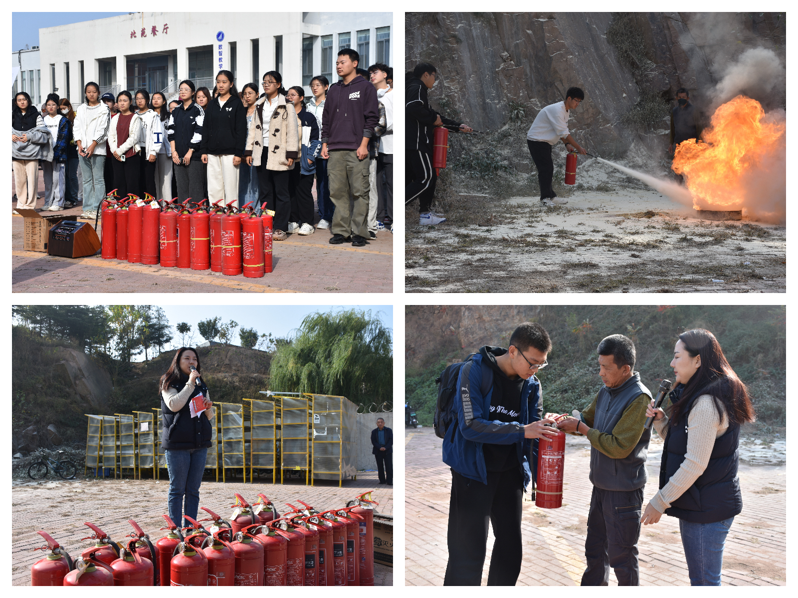 学院邀请专业人员为同学们进行消防安全知识宣讲,结合真实案例,详细介绍了火灾消防的基本知识和各类消防安全隐患,讲解了在宿舍、教学楼内突发火情的逃生技巧。在实战演习阶段,通过现场演示让同学们了解了干粉灭火器和水雾灭火器的操作方法,同学们进行了现场实操演练,并通过火场逃生演练,让同学们在实操中学习了逃生技巧。