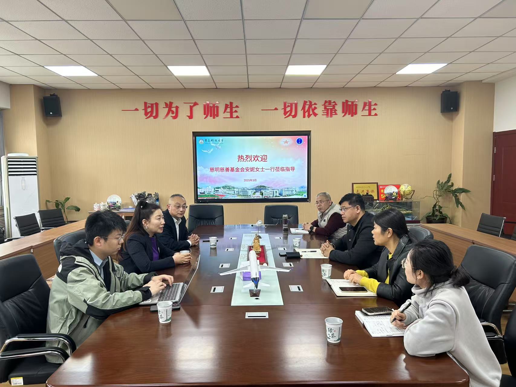 3月3日,青岛市慈明慈善基金会理事长安妮一行来访,法学院党委书记曲明、党委副书记兼副院长王祥梅及相关教师代表参加了座谈会。