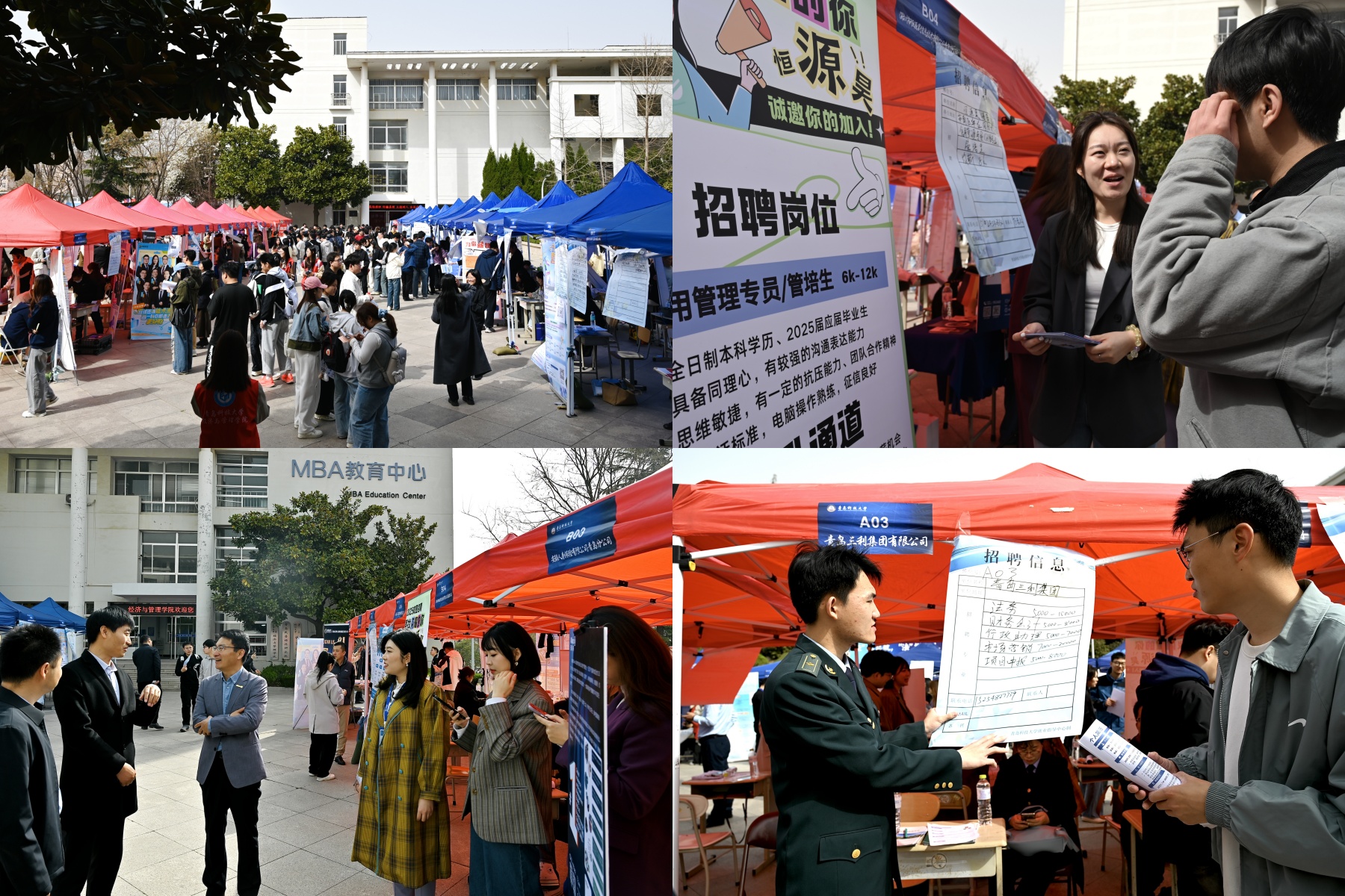 3月25日,法学院、经济与管理学院、马克思主义学院“‘经’彩启航,‘法’挥无限,‘马’到成功”2025届毕业生春季专场双选会在崂山校区弘毅广场举办,110余家省内外知名单位进校揽才,提供岗位数量1500余个。学校党委常委、副校长丁林亲临双选会现场,与用人单位、应聘学生进行交流,深入了解招聘现场情况,并对就业服务工作提出具体指导意见。