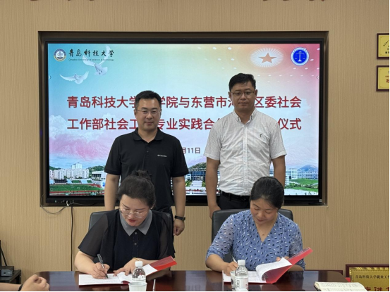 6月11日,青岛科技大学法学院与东营市河口区委社会工作部专业实践合作共建签约仪式在崂山校区弘毅楼C307会议室举行。河口区委社会工作部部长、“两新工委”书记薄纯来,副部长田婷婷,法学院党委书记曲明等共同出席签约仪式。活动由法学院党委副书记王祥梅主持。