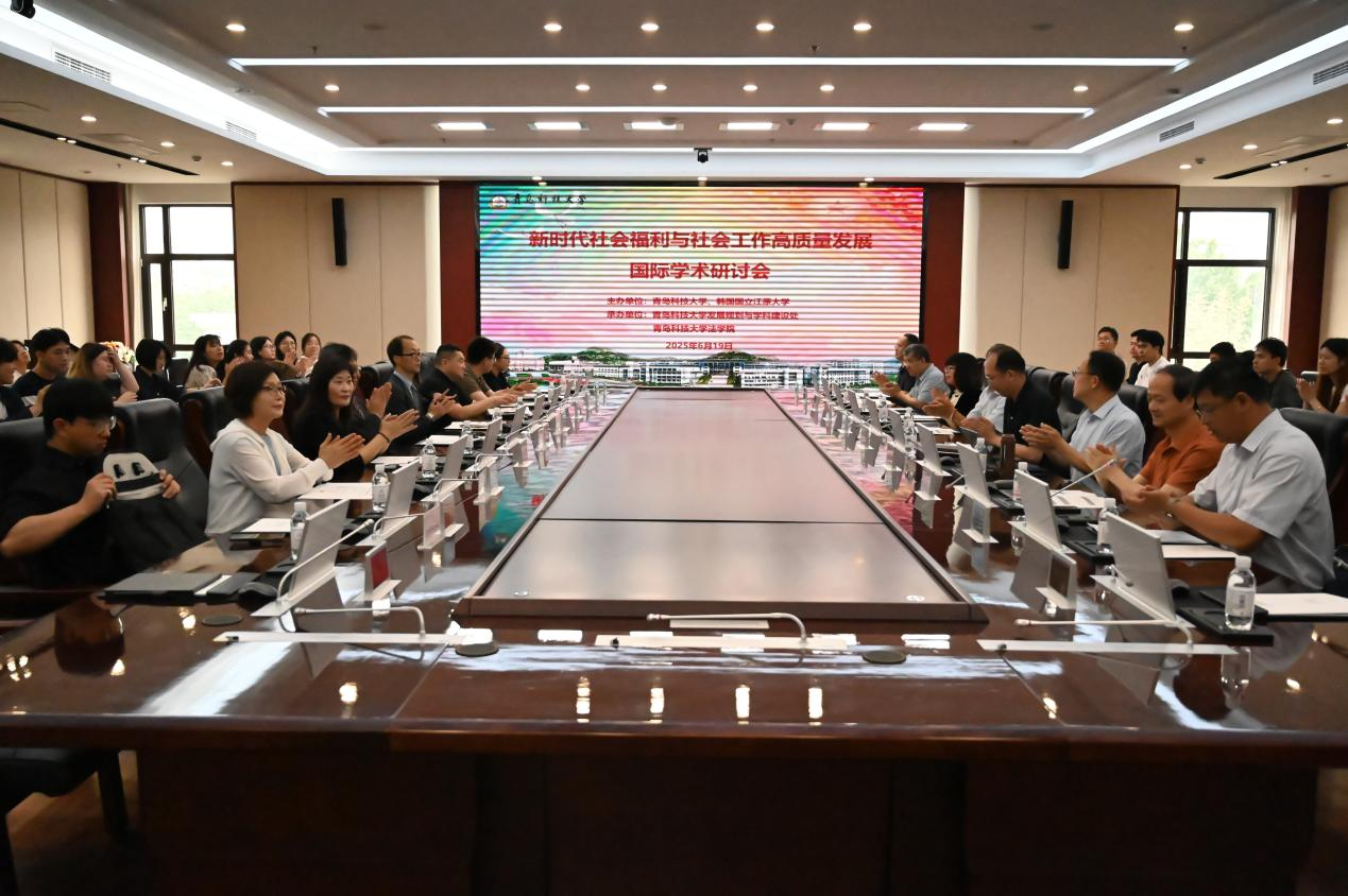 6月19日,新时代社会福利与社会工作高质量发展国际学术研讨会在青岛科技大学崂山校区举行。来自美国俄亥俄州立大学、韩国江原大学、澳门大学、兰州大学、安徽大学和青岛科技大学的专家学者就增进社会福祉、促进社会工作高质量发展等议题开展学术交流。研讨会由法学院党委书记曲明主持。