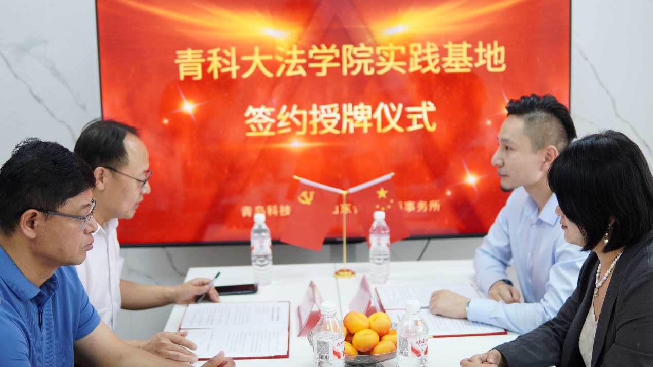 6月30日下午,青岛科技大学法学院与山东青喆律师事务所共建法学专业科研实践教学基地活动在山东青喆律师事务所举行。法学院党委书记曲明、院长王金堂、法律系主任辛帅、法律硕士教育中心办公室主任马鹏斐,山东青喆律师事务所主任苟颖超、执行主任马巧妮、副主任姜琦、新媒体团队负责人李岱桢等参加了活动,本次活动由山东青喆律师事务所律师于萱主持。