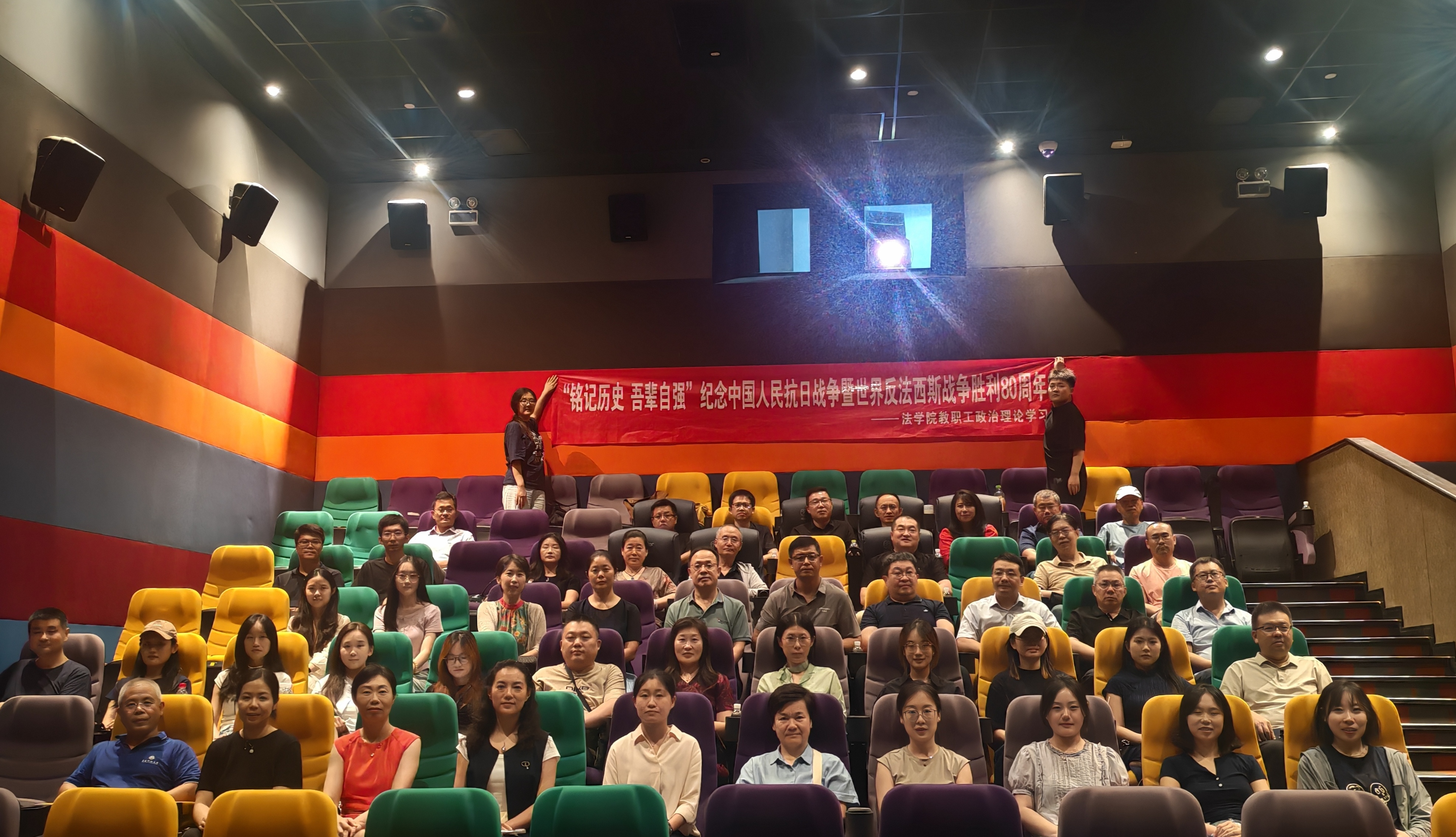为纪念中国人民抗日战争暨世界反法西斯战争胜利80周年,引导全体师生厚植家国情怀,9月2日,法学院举办“铭记历史 吾辈自强”《南京照相馆》集中观影活动暨教职工政治理论学习,学院全体教师及学生代表参加。