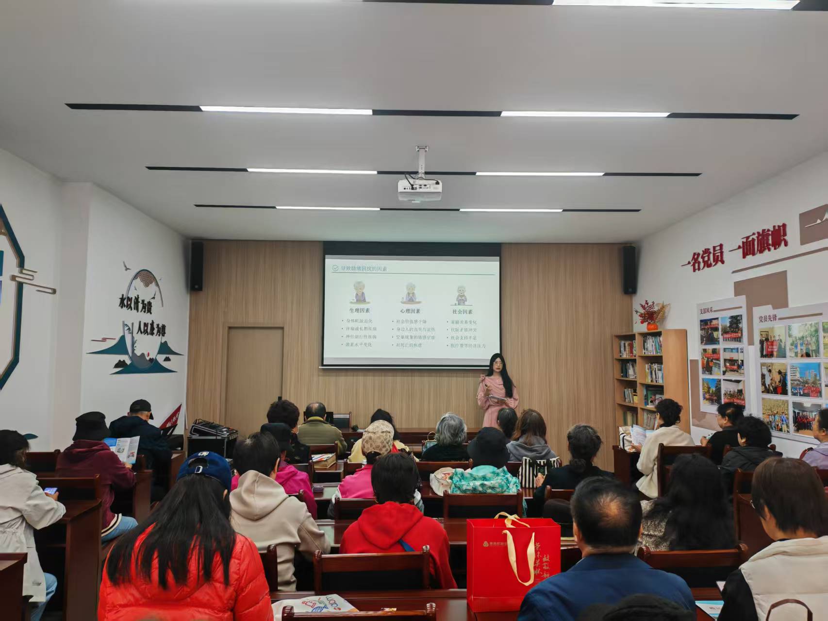 岁岁重阳,今又重阳。为弘扬中华民族尊老敬老的传统美德,关注老年人身心健康,10月29日上午,由青岛科技大学心理健康教育与咨询中心、青岛科技大学法学院心理工作站与金家岭社工站、颐都社区联合举办的重阳节主题活动在颐都社区顺利举办。活动涵盖心理健康讲座、中医宣传与香囊手工制作三大环节,法学院“晴心送暖”志愿服务队的青年志愿者们积极参与,以实际行动传递温暖与关怀。