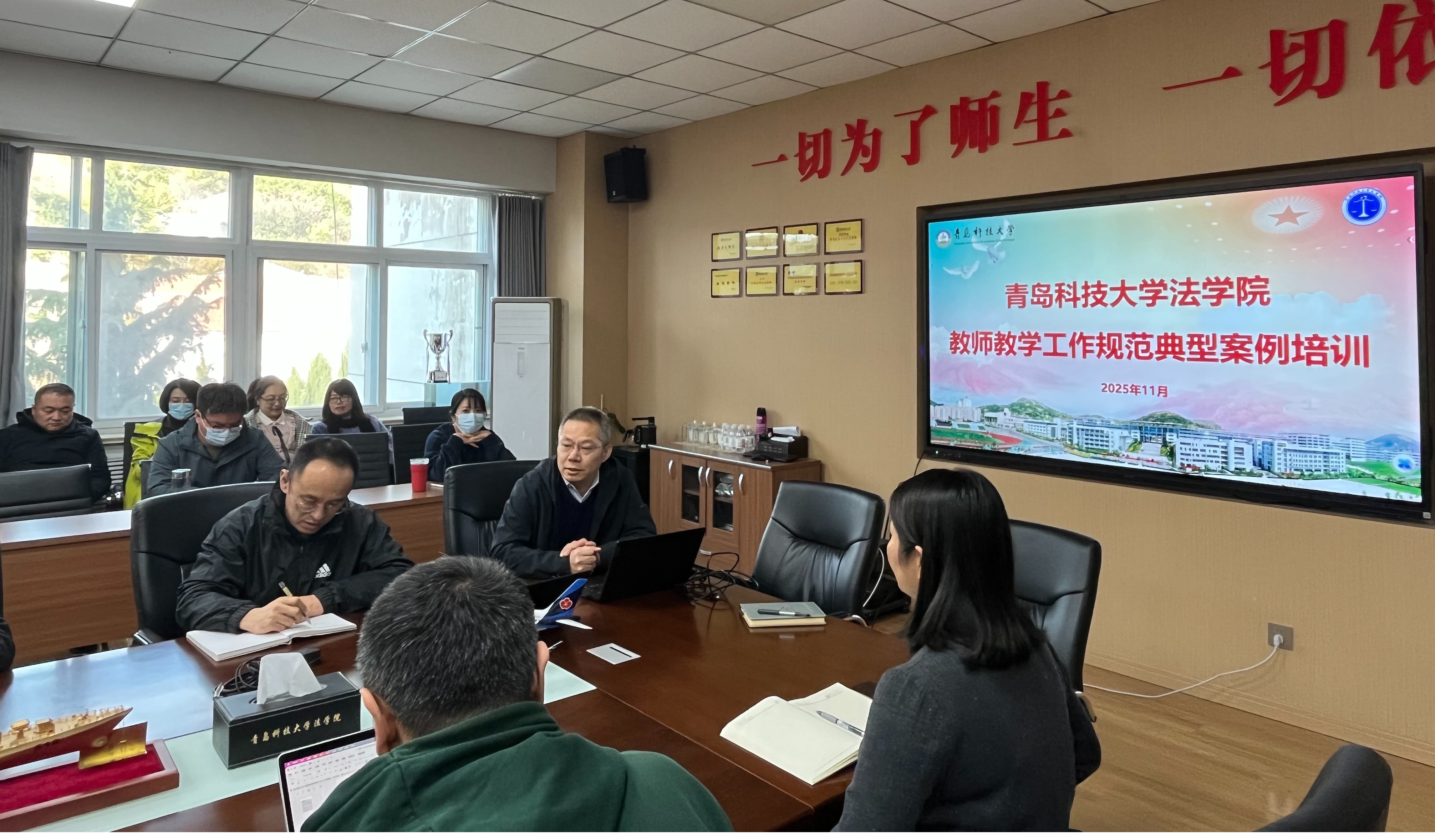 为全面落实学校教师教学工作规范典型案例培训会议部署,进一步强化教学管理、规范教学行为,11月11日下午,法学院召开教师教学工作规范典型案例专题培训会。本次会议旨在以典型案例为镜鉴,引导全体教师深刻理解教学规范的核心要义,并将其内化于教育教学全过程,持续提升本科人才培养质量。会议由法学院教学副院长陈为智主持,全体教师参会。