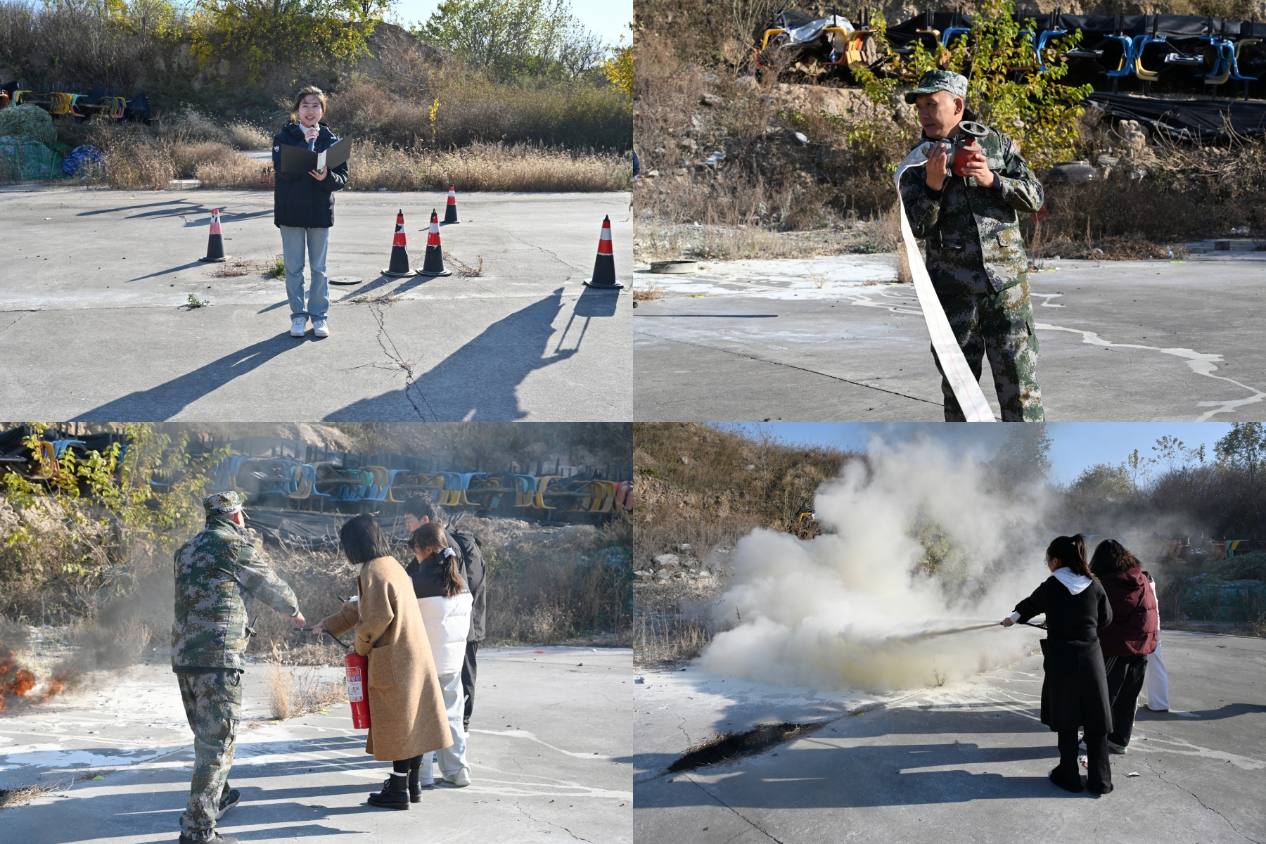 在实操环节中,新生代表在指导下分组进行灭火器实操训练。面对模拟火源,同学们深情专注、动作规范,严格按照操作步骤成功扑灭火情。整个演练过程紧张有序,同学们在亲身实践中切实提升了应对突发火情的应急处置能力。