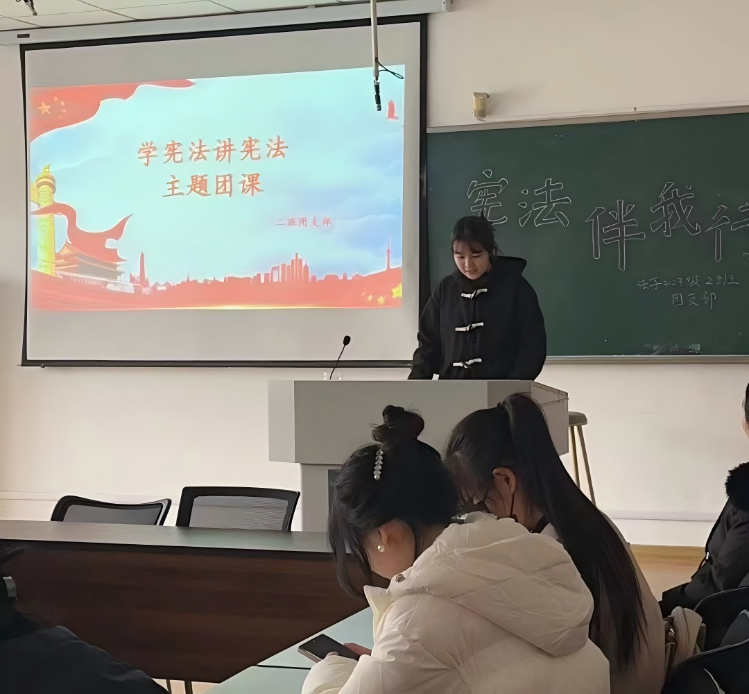 12月4日是我国第十二个国家宪法日,恰逢第八个“宪法宣传周”,法学院法学232班团支部围绕“学习宣传贯彻习近平法治思想,推动宪法深入人心”开展“学宪法讲宪法”专题团课,让宪法精神融入法学生的专业学习与青春成长,推动法治信仰在团员心中落地生根。