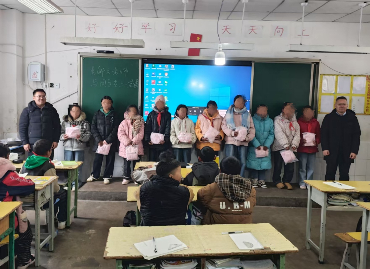 随后,曲明一行来到昭觉县解放沟镇中心小学,捐赠由山东教育集团赞助的500册精品图书,并发放由法学院筹备的500套御寒用品。并与学生们同上一堂课,郝素玉老师围绕小学生情绪调节、学习效能提升和人生规划等内容进行生动授课,为孩子们心中种下走出大山的种子。