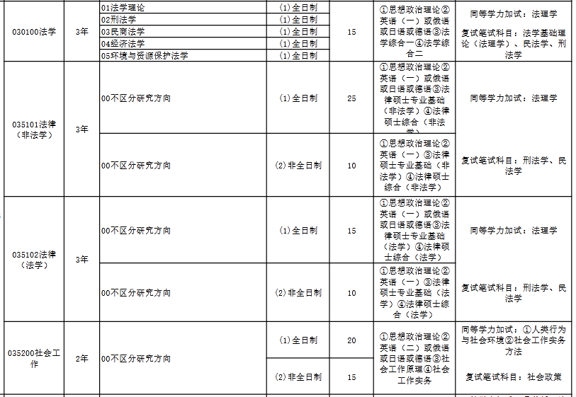 按照教育部研究生招生工作的有关规定,青岛科技大学通过推荐免试方式接收全国优秀应届本科毕业生攻读硕士学位,法学院招生专业为030100法学、035101法律(非法学)、035102法律(法学)、035200社会工作。
