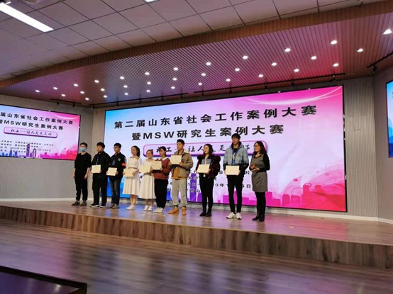 大赛评委由各高校代表组成,经各位评委老师评审,本次大赛评选出了本科生、研究生组的一、二、三等奖。青岛科技大学法学院副院长李鑫宣布获奖名单,并与各位评委一起为获奖选手颁奖。青岛科技大学法学院团队表现突出,共获5项大奖,其中,研究生组参赛作品《疫情中的“独家记忆”——家庭沟通问题的萨提亚家庭治疗模式介入》获得大赛一等奖,《理性认知家和谐——认知行为模式在家庭社会工作中的应用》、《党员社会工作者结对帮扶低保户的心理社会治疗模式介入》分别获二等奖。本科生组《折翼天使的新生——生态系统模式下残疾女性的综合个案管理》获得大赛二等奖,《家暴并非家务事》获得三等奖。陈为智、金英爱、王琪、刘琰四位老师被评为优秀指导老师。