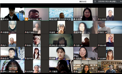 为进一步激发社会工作专业研究生同学的科研积极性,尽快明确研究方向,迅速开展学术研究,法学院社会工作硕士(MSW)研究生教育中心于2021年1月8号19点30分在腾讯会议召开了线上学术报告会,报告会主题为:研究生如何选题与学术论文写作。法学院MSW硕士生导师陈为智老师、金英爱老师、王琪老师、徐从德老师、张行老师进行了报告会主题发言,社会工作系王卫国老师、李亚妮老师、刘琰老师、杭帆老师、卢新亮老师、吴永金老师等共同出席会议,王琪老师主持会议,MSW研究生、社会工作专业本科生近百人参加会议。