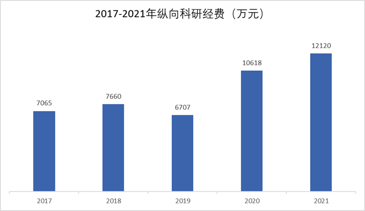 学校纵向科研经费及项目数量创新高。第十次党代会以来,学校纵向科研项目总经费达到4.4亿元(图1),承担国家级项目395项,其中重点、重大项目(参与)53项,国家自然科学基金项目259项。2021年国家自然基金立项63项,为近十年来最高数量。