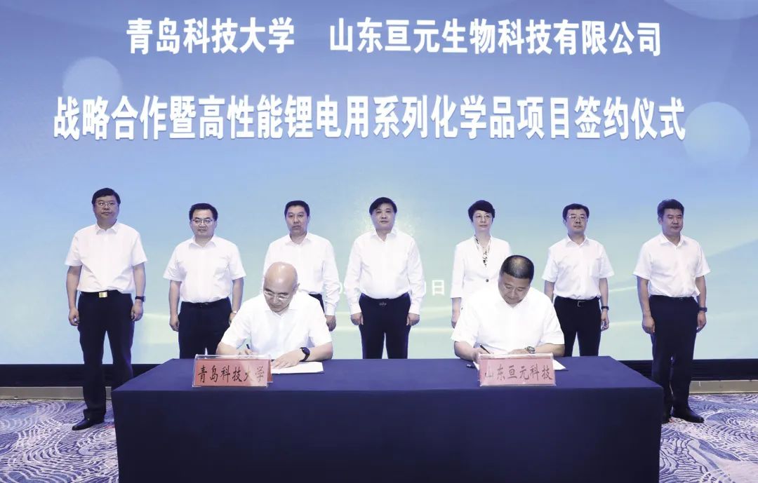 2022年7月,我校与山东亘元生物科技有限公司战略合作暨高性能锂电用系列化学品项目正式签约(图3),合同金额达到了7.7亿元,是目前山东省单笔金额最高的校企合作项目。项目全部实施后,将分别建设万吨生产装置,预计年销售收入总额60.1亿元,年利税总额24.695亿元。