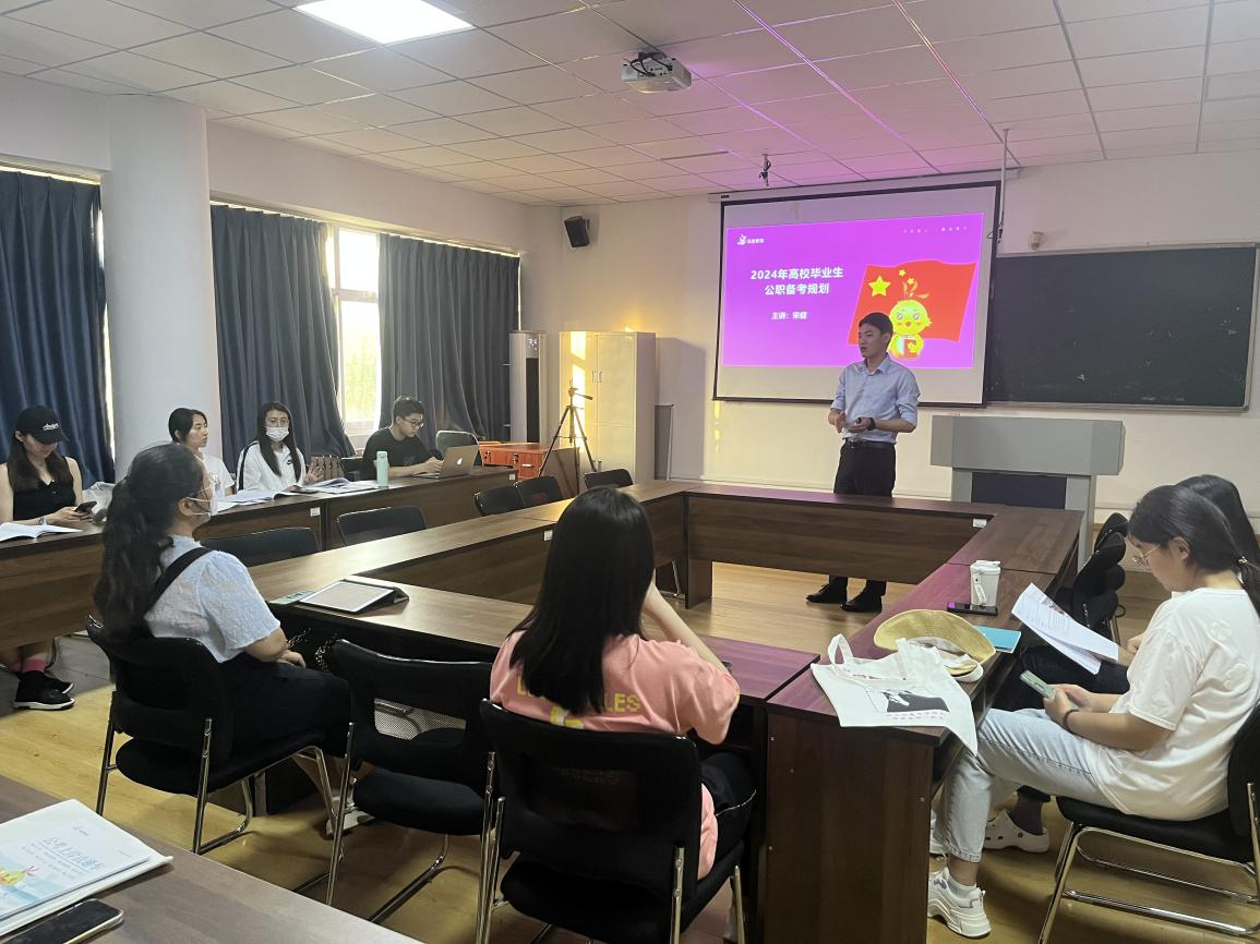 为引导学生树立学业规划意识和正确的就业观,提升高质量就业。结合学习贯彻主题教育要求,法学院研究生会立足学生需求、学情实际,于6月9日下午在弘毅楼C406举行了考公经验分享会,邀请张俊豪、王慧宏和宋健作为分享嘉宾,法学院研究生会全体成员参加了分享会。
